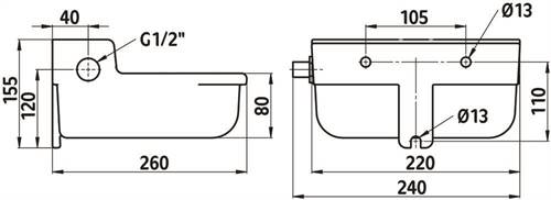 • G 1/2" Anschluss am Niederdruck-Schwimmerventil (22182), von links oder rechts möglich